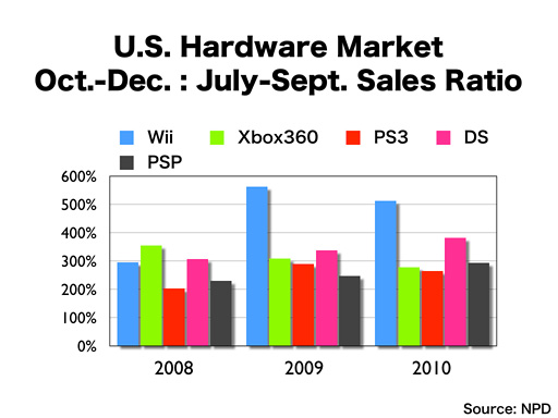 Also, our handheld systems tend to rely on the year-end sales season, and in 2008 and 2009 there wasn’t such high dependency since the Nintendo DS sold well during the entire year; however, in 2010, we can see a higher dependency than other hardware systems.