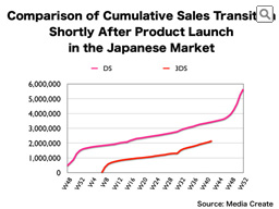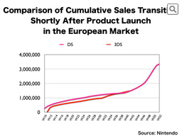 Also, for the Nintendo 3DS hardware year-end sales trend, rather than looking at the current situation for the Nintendo DS where the platform has become widespread, I think it is more valuable to look at how the Nintendo DS spread at the initial stage as a comparison. Please take a look at the sales transition of the Nintendo DS until the second Christmas and the cumulative sales transition for the Nintendo 3DS since the launch which compares the sales for the corresponding time of the year.