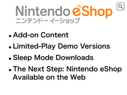 In terms of its usability, we know that there still are several issues with the Nintendo eShop. We have made several improvements for this time. For example, software downloads can be done when Nintendo 3DS is in sleep mode, which will lessen the need for the users to patiently wait by while downloading several software titles at once or while downloading software with a large memory capacity.