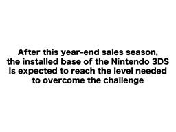 In terms of our marketing efforts, the Nintendo 3DS faces the challenge of effectively communicating its attractive features by using traditional means of advertising, TV and print ads. You know that I have discussed with you several times about the challenge to communicate the appeal of 3D viewing on the Nintendo 3DS as well as about its StreetPass and SpotPass communications features. On the other hand, once a certain number of units of the hardware is sold, an appropriate level of awareness can be created by word of mouth. In other words, once the hardware has reached a certain sales point, its power to invite surrounding others to join the circle increases. This means that the entertainment that that particular hardware provides will entail an increased social aspect. Nintendo’s past platforms were able to make significant penetration into society after entering this good cycle. After the upcoming year-end sales season is over, the Nintendo 3DS is anticipated to reach the expected installed base that is necessary to create a favorable word-of-mouth cycle. We can expect the Nintendo 3DS to enter into the phase where relevant information shall be communicated even to people who usually do not proactively seek video game information.