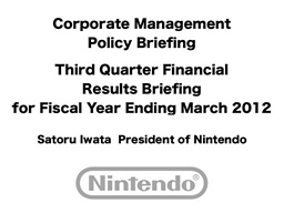 Thank you for attending our Operational Briefing despite your busy schedules. I’m Satoru Iwata, president of Nintendo.