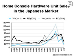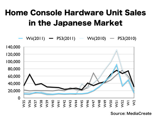 We saw some growth in sales of the Wii during the year-end sales season, but since families’ attention was focused on the Nintendo 3DS, the start of the year-end sales was slower and the peak turned out smaller than that of the previous year. Although Sony’s PS3 performed in a similar fashion to the previous year, no home console made sales of over 100,000 units per week at the end of last year, and no home console showed a large presence in the market.
