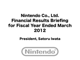 As Yoshihiro Mori has already briefed you on the financial results, I would like to begin by talking about the global video game market in 2012 as well as Nintendo’s future prospects.