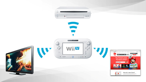 And with the Wii U, everything becomes integrated. Schematically it looks like this: your TV, the Wii U hardware and the Internet all connected to one another with the Wii U GamePad in between acting as the key link for all these devices.