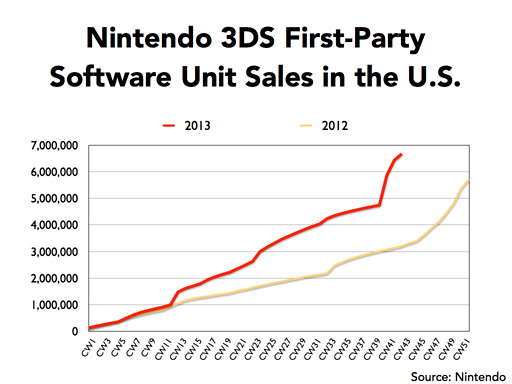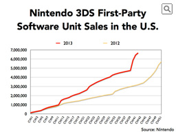 This is a graph which compares this year's sales transitions of first-party software for Nintendo 3DS to last year's in the U.S. market. We have already sold more units than the total of last year even before the full-fledged year-end sales season.