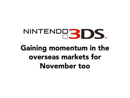 Although we simultaneously released Nintendo 3DS XL and “New Super Mario Bros. 2” last summer, we were not able to sustain that momentum until the year-end sales season was in full swing and turn Nintendo 3DS into a leading force in the overseas markets.