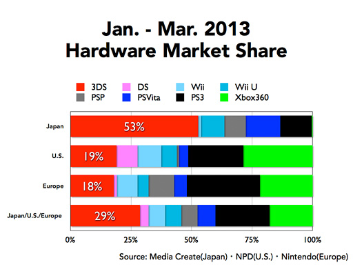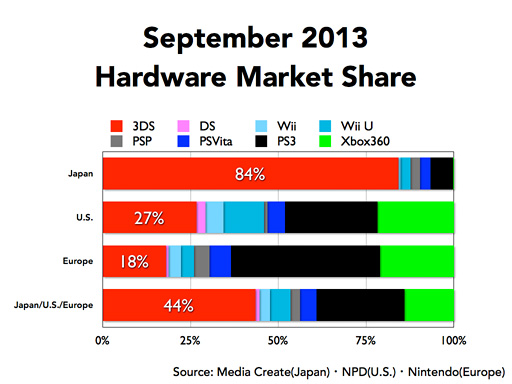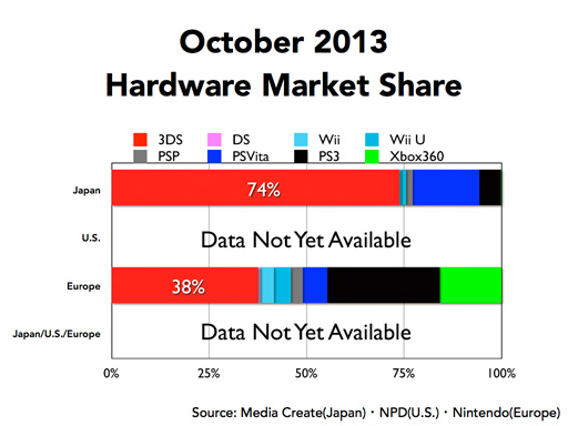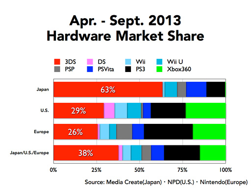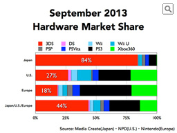 “Pokémon X/Pokémon Y” greatly boosted Nintendo 3DS sales in Japan and Europe, which can be seen in the market share. We have no sales data for other companies, so we are unable to show the U.S. data here, but the sales of Nintendo 3DS are growing in the U.S. just like they are in Europe.