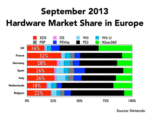 When we look at the September market shares of each country in Europe, although Nintendo 3DS dropped temporarily,