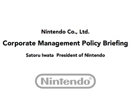 Thank you for attending our Corporate Management Policy Briefing despite your busy schedules. I am Satoru Iwata, president of Nintendo.