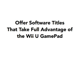 Obviously, under the current situation where the company has to report an operating loss, simply executing a price reduction as a way to defuse the situation is not an option. In the short-term, Nintendo will focus on thoroughly enriching the value of the most significant feature of Wii U, the Wii U GamePad.