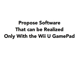 At the Corporate Management Policy Briefing this January, I explained that the company would prioritize making and proposing Wii U software titles that can only be made possible with the Wii U GamePad. We are planning to disclose our progress on this at E3 (Electronic Entertainment Expo) in Los Angeles in June.