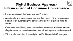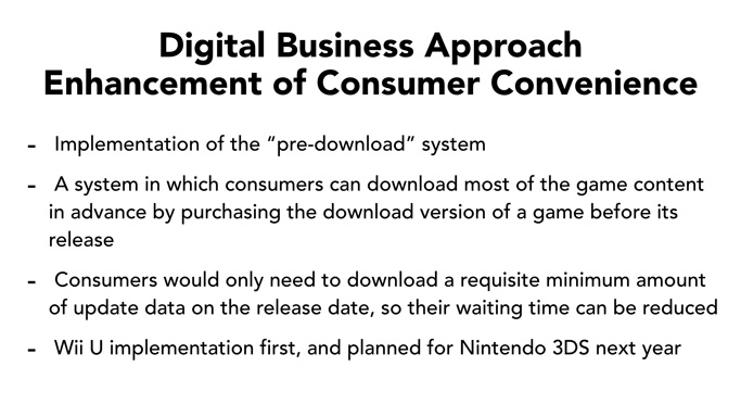 Also, we will be implementing what we call a “pre-download” system with “Super Smash Bros. for Wii U” that will be released at the end of this year.