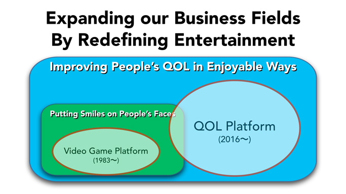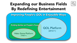As I stated during our last Corporate Management Policy Briefing in January this year, we have redefined entertainment as something that “improves people’s QOL in enjoyable ways” and aim to broaden our business fields. As a part of this endeavor, we are now going to newly establish this QOL improvement platform.