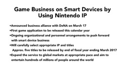 In addition, to facilitate the ability for consumers to be closely and continuously connected with Nintendo IP, Nintendo will also deploy Nintendo IP on games for smart devices.