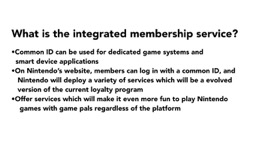 So far, the members input their Club Nintendo ID to use the services. With this new service, our members will be able to visit Nintendo’s website and log in with one ID, and they will receive various services including the ones based on their past purchases and gameplay records as well as services that will be an improved version of the current loyalty program.