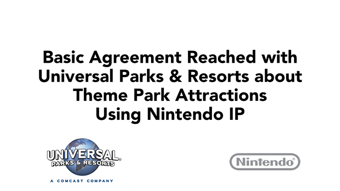 Nintendo and Universal Parks & Resorts, which manages the "Universal Studios" theme parks, have reached a basic agreement about deployment of theme park attractions using Nintendo IP.