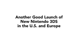 The New Nintendo 3DS models, which we initially released in Japan and Australia during the last year-end sales season, were launched in the United States and Europe on February 13 this year.