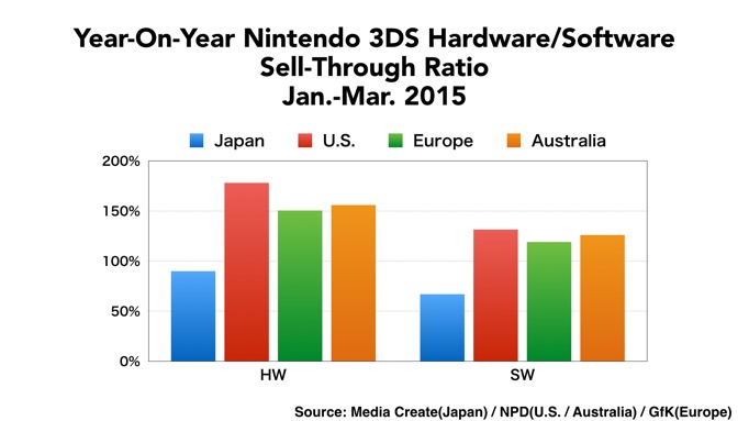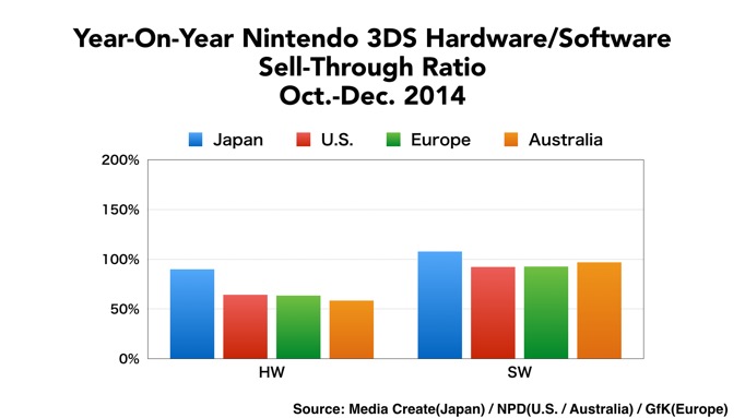 As you can see, except for Japan, where New Nintendo 3DS contributed to the full quarter, the hardware sales fell far short of the previous year in the U.S. and Europe where the new models were not available during the third quarter and in Australia, where they were launched in late November.
