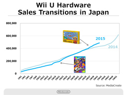 You can see that Splatoon released on May 28 and Super Mario Maker released on September 10 have boosted the sales pace, surpassing that of last year.