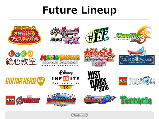 In addition to Nintendo-published titles, the lineup of software from other software publishers is becoming richer, so we would like to keep the momentum gained by Splatoon and Super Mario Maker.