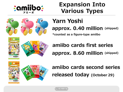 In addition to the figure-type amiibo, we released Yarn Yoshi amiibo and card-type amiibo. Yarn Yoshi was released in Japan, Europe and Australia during this second quarter period and shipped approximately 400,000 units. It was also launched in the US in October and is enjoying a good start.