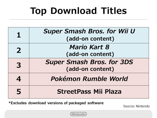 In particular, the add-on content for Smash Bros. and Mario Kart 8 made large contributions.