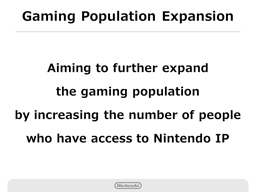 By increasing the number of people who have access to this Nintendo IP or video game characters, music and world view, and by increasing the value of Nintendo IP, we aim to further expand the gaming population.