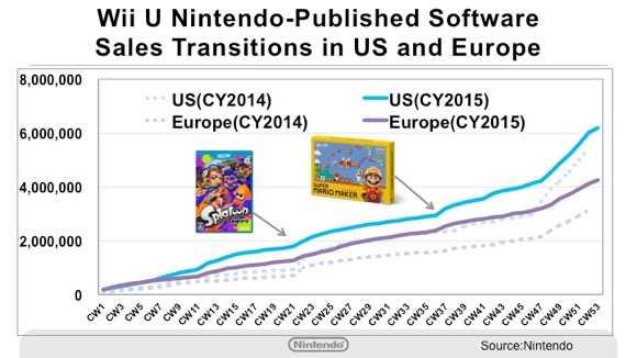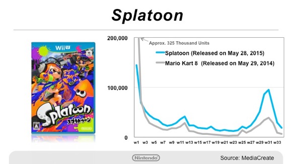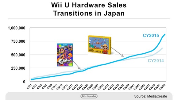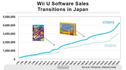 Since the two key titles, Splatoon released on May 28 last year and Super Mario Maker released on September 10 last year, had kept up their momentum until the year-end sales season, the total sales figure surpassed that of 2014, when Mario Kart 8 and Super Smash Bros. for Wii U were released.