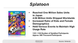Splatoon has been showing steady sales for a long time since its release last May. It has shipped 4.06 million units worldwide as of the end of the third quarter of this fiscal year.