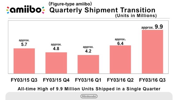 Approximately 31 million units of figure-type amiibo have shipped to date worldwide as of the end of third quarter of this fiscal year.