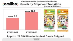 Approximately 12.9 million individual amiibo cards were shipped in the third quarter of this fiscal year, which totals approximately 21.5 million cards worldwide since its release in July last year in Japan.