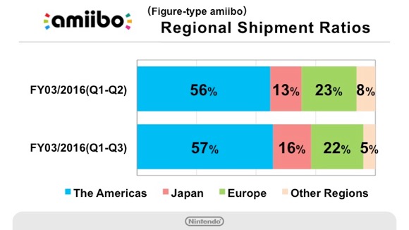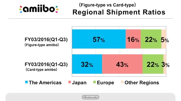 This graph shows the latest shipment ratios by region for both figure-type and card-type amiibo.