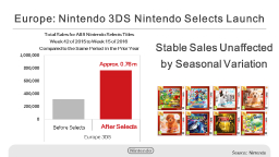 At the last financial briefing, we discussed the strong performance of the Nintendo Selects discount titles, which were launched in October in the European market. This sales performance has not seen much impact from seasonal variation, as these titles have continued to sell well since the start of the calendar year.