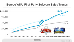 This graph shows the Wii U first-party software sell-through in Europe, compared with the same period over the last two years.