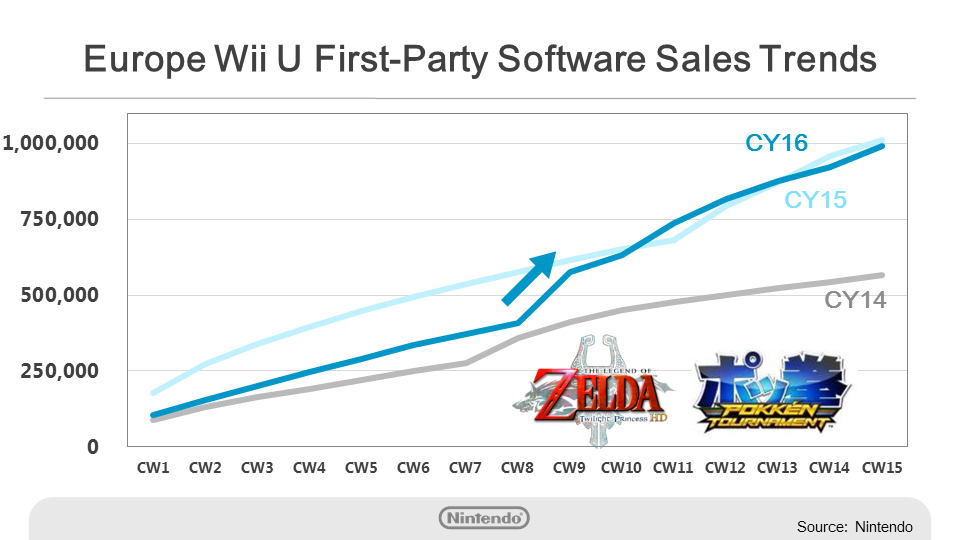 In Europe, Pokémon Super Mystery Dungeon was released in February, and Nintendo Selects was kicked off last October. These titles continue to perform well, but the sales trends for first-party software as a whole remain slightly under the trends for 2014. We plan to release Fire Emblem Fates in Europe in May.