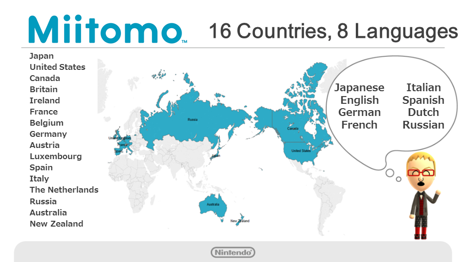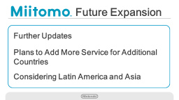 Miitomo aims for further expansion in the future, with plans for regular updates and extension of service to additional countries. We are considering possibilities for launching service in South America and Asia.