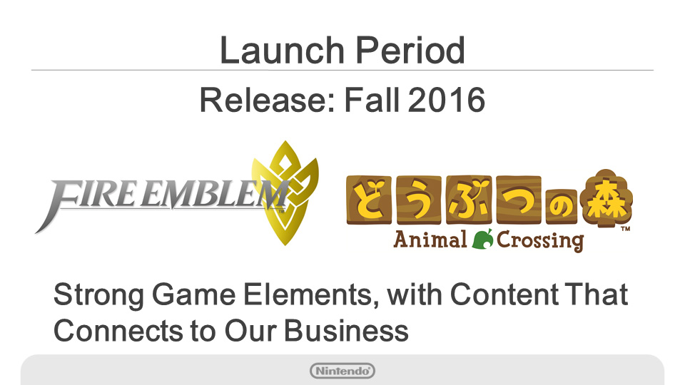We will follow Miitomo by releasing new applications using the Fire Emblem and Animal Crossing IPs globally, and our plan has not changed in terms of releasing around five titles by March 2017.