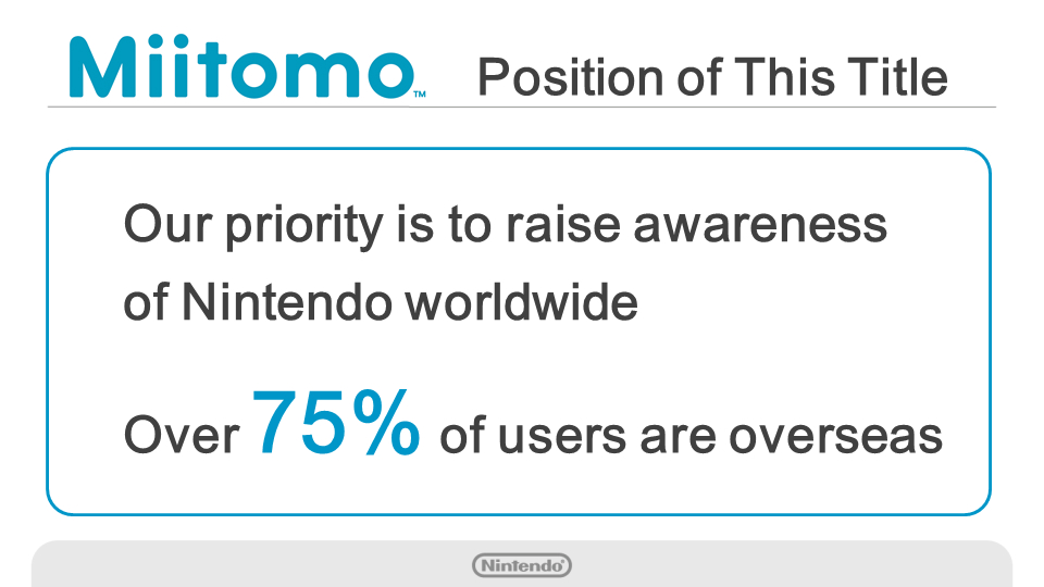 As a result, users are enjoying Miitomo across the globe, with over 75% of users outside of Japan at present.