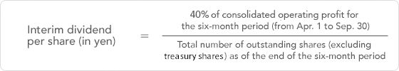 * The interim (end of 2nd quarter) dividend for the fiscal year ending March 2026 is calculated in accordance with the previous dividend policy, and the total dividend payment is based on 33% of consolidated operating profit for the interim (end of 2nd quarter) period.