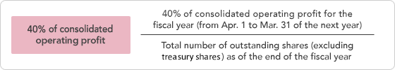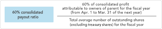 Year-end dividend per share will be established by deducting the paid interim dividend per share from the annual dividend per share, which will be established at the higher of the amount calculated by the following standards: