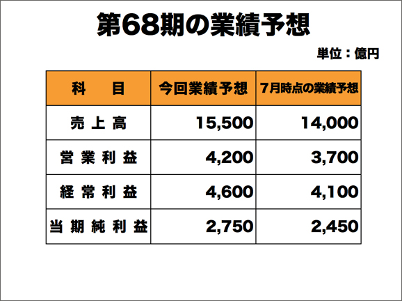 これらの見通しを経て、今期の業績予想を見直して、昨日発表いたしました。