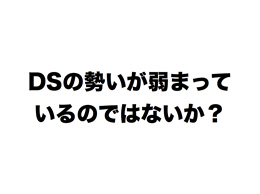 DSの勢いが弱まっているのではないか、というご懸念ではないかと思います。史上最速のペース、発売3年あまりで2,200万台以上を販売し、日本のゲーム史上で最も普及したプラットフォームとなったニンテンドーDSですが、昨今、以前のような勢いが見られなくなったとご指摘を受けております。