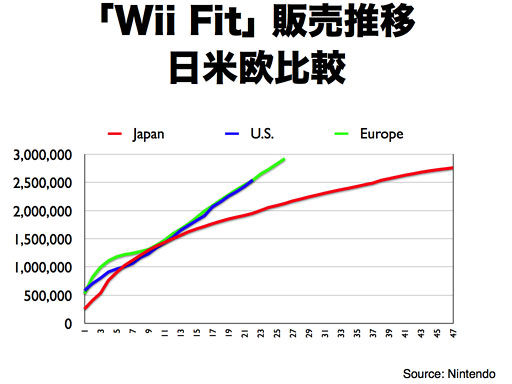 Wiiでも、長期にわたって売れ続けているソフトがいくつもあるんですが、その中でも特に勢いがあると感じているのが昨年末に日本で発売し、今年春にアメリカやヨーロッパで発売したWii Fitです。
