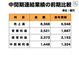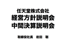 2009年3月期の中間決算における連結業績についてご説明いたします。中間期の売上高は8,368億円で、前期に比べ、主に米ドル対円において円高の影響を受けましたが、主に海外でDSやWiiのビジネスが順調に推移したことから、大幅な増収となりました。また、営業利益は2,521億円、経常利益は、2,373億円となり、中間純利益は、主に経常利益が増加したことなどにより、1,448億円と増加しました。これら全ての数字で、過去最高を達成しています。また、今期から中間配当の配当方針も改め、連結営業利益の33%を配当原資とするということにしましたので、配当は、前期の中間配当140円から、今期につきましては660円といたします。