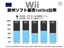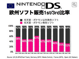 ヨーロッパは、『脳トレ』や『nintendogs』などのTouch! Generationsソフトが世界で最も売れた国々です。ですから任天堂の販売シェアが高い時期が一時あったのですが、多くのソフトメーカーさんが積極的にDS向けのソフトを展開され、すでに結果を出されています。