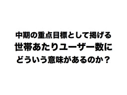 最後に、ひとつお話ししたいことがあります。それは、昨年の決算説明会で、中期の重点目標としてお話しした、「ゲーム機の世帯あたりのお客様の数」にどういう意味があるのかについてです。私たちがこの数字にこだわっている理由は、世帯あたりのユーザー数が高まることが、私たちの目指すゲーム人口拡大にとって非常に重要な要因となると考えているからです。