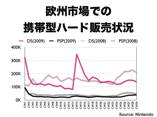 4月にDSiの海外での発売があったが、ヨーロッパでの減少が目立ってきている。足下の動向を含めて、DSの海外市場の動向をどのように分析されているのか、そして今後の見通しについて伺いたい。 |