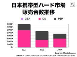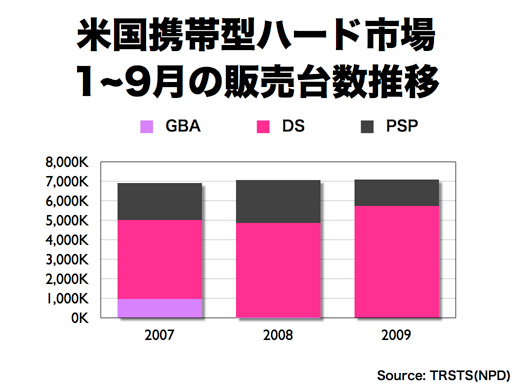 これは、アメリカ市場における携帯型ハードの販売台数の推移です。