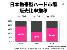 アメリカのゲーム市場全体が前年割れしている中で、DSは、今年も約17%強販売が伸びました。これは、今年に入ってからニンテンドーDSiを投入したこと、そして、DS全体の普及が日本やヨーロッパなどに遅れて推移した中で、アメリカ市場のポテンシャルが今年発揮されていることなどによるものと分析しています。