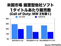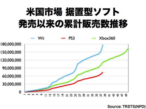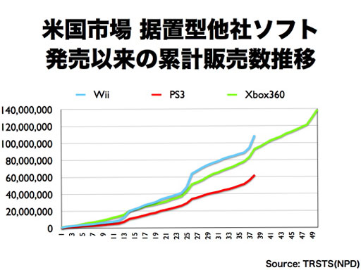 岩田: 実際のところ、10月、11月は私も気をもみました。(気を)もまない社長がいたらおかしいです。といいますのは、やはり「11月も中旬になればもっと反応があるはずだ」という期待があったわけです。われわれはやるべきことをやり、商品のお客様の満足度も決して低くないことも分かっていました。それなのに、週販が例年のパターンで上がらないということで、これは率直に申し上げて、「すべてが計算どおりだった」なんてごう慢なことを申し上げるつもりは全くなくて、気をもみました。結果から言いますと、「お客様は急ぐ理由がない時はこう行動されるのか」ということを改めて学んだという感じがします。具体的に言いますと、2007年、2008年、恐らくアメリカ、ヨーロッパの市場で起こっていたことというのは、「早いうちに買わないとDSやWiiは肝心な時に品切れしてしまう」と多くの方が思われ、また経済のムードも今ほど悪くない状況の中で、お客様が買うという判断をしやすかったと思うんです。それが2009年の場合は、「(品切れの心配はないから)お得なディール(取引条件)が出るまで待とう」ということになりました。結果的には、幸運にも任天堂の商品を選んでいただけた方が非常に多かったと思います。それは、「選んでいただけるように準備をしていたからこそできた」とも言えますし、一方で「紙一重のところで私たちに追い風が吹いたにすぎない」とも思います。 ただ一方で、「ロウソクの最後の火」というような意識は全く持っておりませんで、われわれ自身、どういう条件がそろうとお客様が「買おう」という判断をされるのか、決断ができるのかということを改めて今回学びましたので、そのことに対して温度が冷えないように努力したいと思います。また、先ほども申し上げましたが、昨年の頭の時点でのWiiソフト市場のムードと、今年の頭の時点でのWiiソフト市場のムードというのは全く違いますし、『New スーパーマリオブラザーズ Wii』は短期間に1,000万本以上売れましたが、年が明けてからガクっと失速しているわけではなくて非常にいいペースで今も売れております。これは日本、アメリカ、ヨーロッパ共通の傾向ですから、まずこのポテンシャルをしっかり引き出すことができれば、まだまだ多くのお客様に受け入れていただけるはずだと思っています。例えば、日本は1,000万台弱のWiiに対して300万本以上の『Newマリオ』が売れているわけです。一方で、12月末時点でアメリカの『Newマリオ』の販売数というのは、NPDの発表で420万本だったと記憶しているんですが、Wii本体の販売数は日本の3倍近くあって2,700万台くらいあるわけです。アメリカの420万本は素晴らしい結果ですが、日本の(ハードに対する販売)比率で比べたら「まだ全然じゃないか」とも言えるわけで、するとまだ相当上積みの余地があるわけです。そしてそういうことが社会の話題になって常に周りで『Newマリオ』を楽しんでいるという声が聞こえていれば、Wiiにちょっと興味があった人に「やっぱり買おうかな」という気持ちになっていただきやすいわけで、そういう状況をどう冷やさず作るか、ということなんだと思います。 ちなみに今日お話ししたラインアップの中には、年の後半に出るものと年の前半に出るものが混ざっていて、「発売月は何月です」と申し上げられればいいんですが、現在最終調整中です。今日お話ししたものが全部年の後半にならないと出てこないというわけではありません。当然私たちも市場を冷やさないように、去年のように年の後半になってから(主軸タイトルを)3つ出して、それで再加速するというようなやり方が本来スマートだとは全く思いません。むしろ、バランスよく配置してバランスよく勢いを維持していくことが必要だと思っています。 それから、「(アマゾンさんの)キンドルに興味がある」と申し上げたのは、「キンドルという機械が3G携帯電話のネットワークを使っていながら、お客様が直接(携帯電話の)通信キャリアさんにお金を払うモデルではないことを実現しているというところに興味がある」という意味で申し上げました。確かに、携帯電話のネットワークを使えば、お客様に常に(インターネットに)接続した状態のデバイスをお渡しできるわけで、今では3Gのモジュールというのはそれほど高くなく買えますから、製造原価そのものは、それはあまり大きな問題ではなくなってきているんですね。ところが、今のところ3Gのネットワークというのは、世界中の通信キャリアさんがものすごい巨額の設備投資をされていて、それを使わせていただかない限りは使えないわけです。すると、お客様は恐らく毎月何千円かのお金を払わないとたくさんのパケット通信を使えないのですが、「このゲーム機を買ったら向こう2年間毎月5,000円払ってください」というようなゲーム機の売り方は、私は成立するとは思えません。だから、アマゾンさんがうまくビジネスモデルを